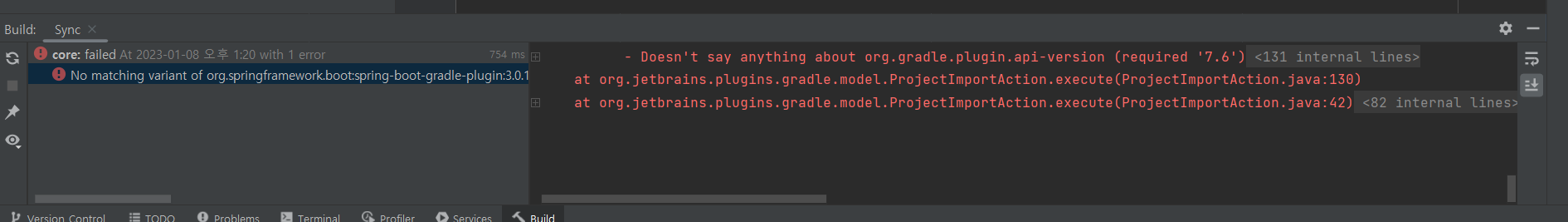 프로젝트 빌드 오류 (No matching variant of org.springframework.boot:spring-boot-gradle-...)