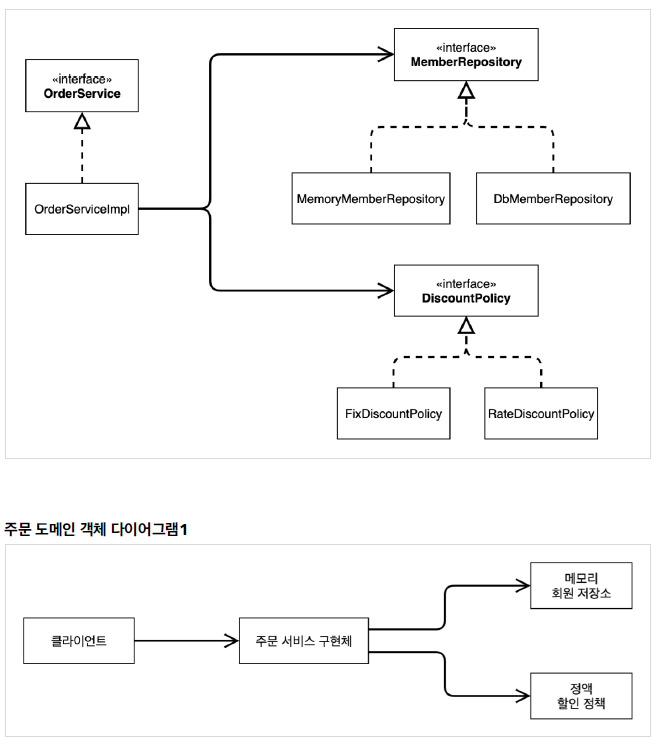 회원을 메모리가 아닌 실제 DB에서 조회하고, 정률 할인 정책(주문 금액에 따라 % 할인)을 지원해도 주문 서비스를 변경하지 않아도 된다. 협력 관계를 그대로 재사용 할 수 있다.