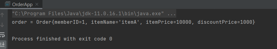 return new Order(memberId, itemName, itemPrice, discountPrice);