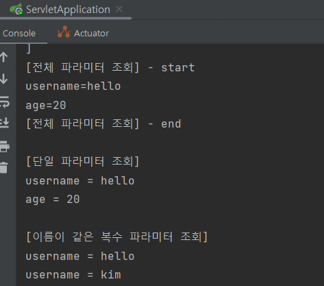 * http://localhost:8080/request-param?username=hello&username=kim&age=20
