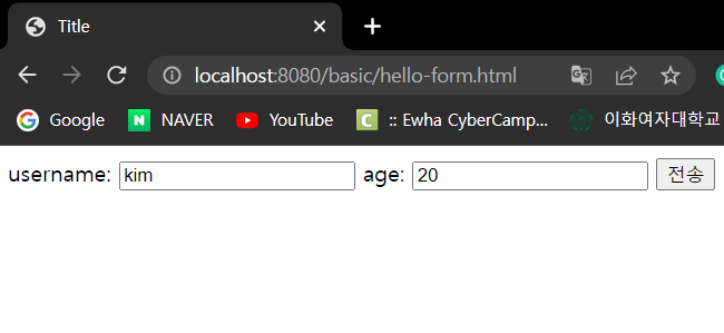 POST HTML Form 형식으로 데이터를 전달하면 HTTP 메시지 바디에 해당 데이터를 포함해서 보내기 때문