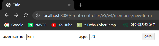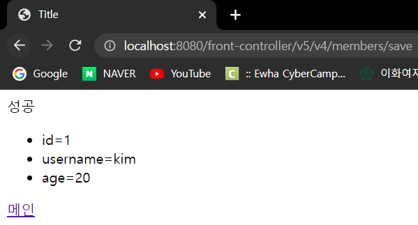 저장: http://localhost:8080/front-controller/v5/v3/members/save