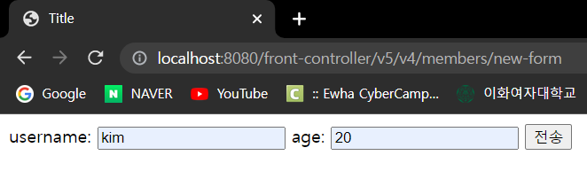 등록: http://localhost:8080/front-controller/v5/v4/members/new-form