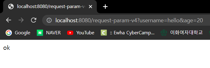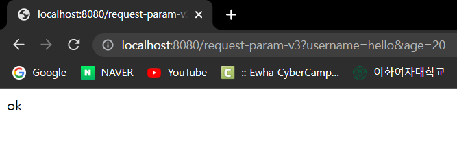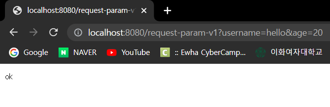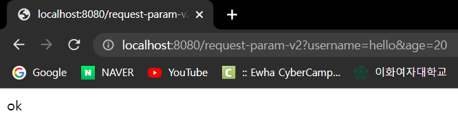 HttpServletRequest 의 request.getParameter() 를 사용하면 다음 두가지 요청 파라미터를 조회할 수 있다.
