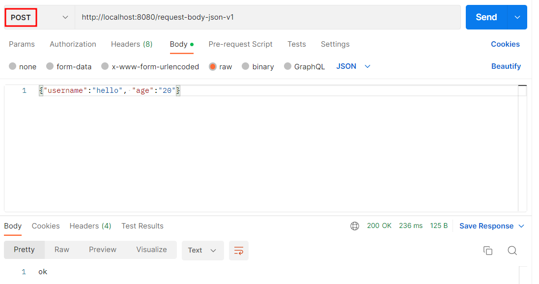- 메시지 바디에 쿼리 파리미터 형식으로 전달 username=hello&age=20