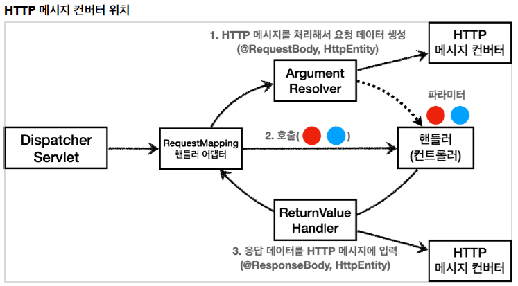 그렇다면 HTTP 메시지 컨버터는 스프링 MVC 어디쯤에서 사용되는 것일까?